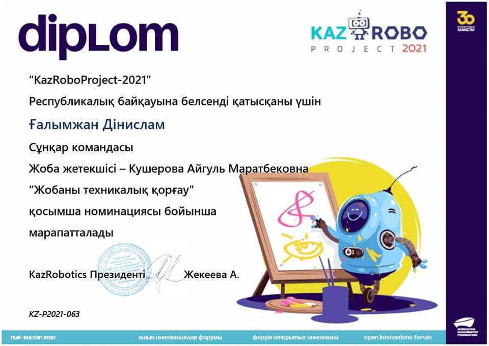 "KazRoboProject- 2021" ғылыми-техникалық жобалар байқауы жеңімпаздарын ҚҰТТЫҚТАЙМЫЗ!